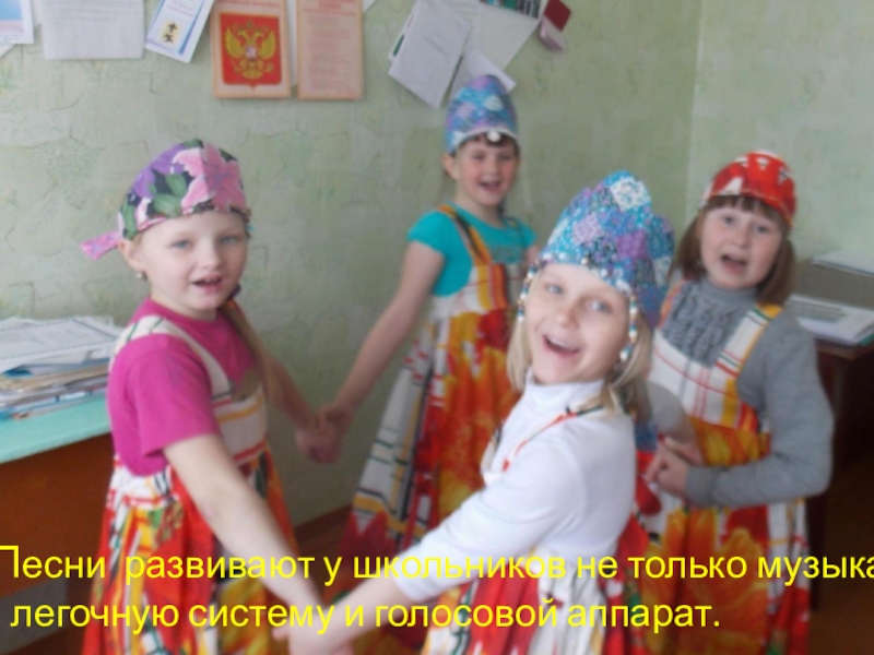 Слайд 22 Песни развивают у школьников не только музыкальную память и слух,