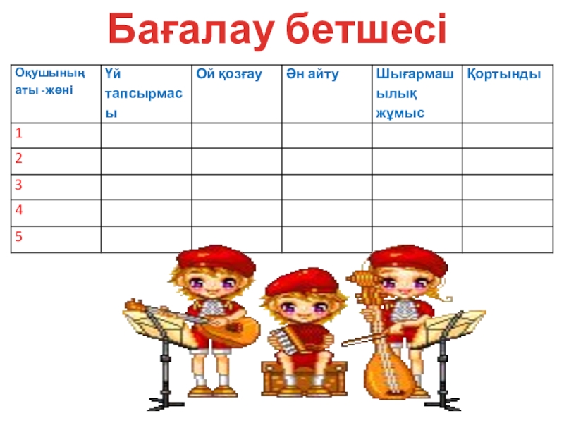 Ұлттық тәрбиеге, рухани мәдениеттілікке жоғары эстетикалық талғам қалыптастыра отырып , ұлттық музыкаға деген сүйіспеншіліктерін қалыптастыру.