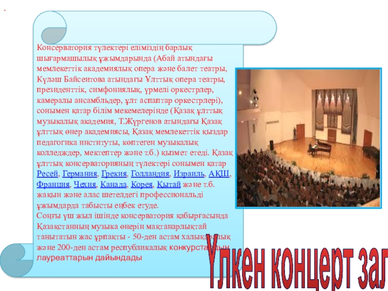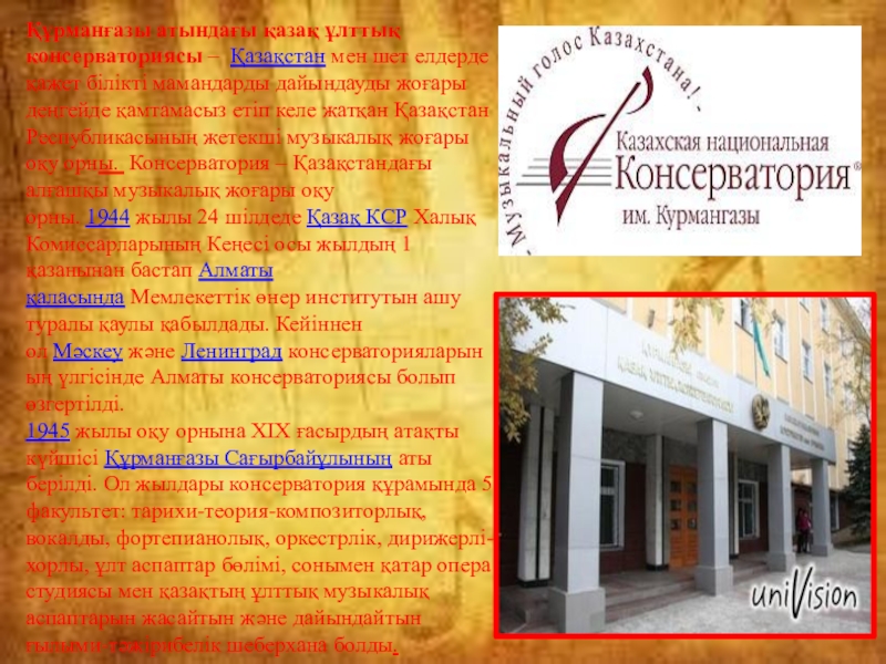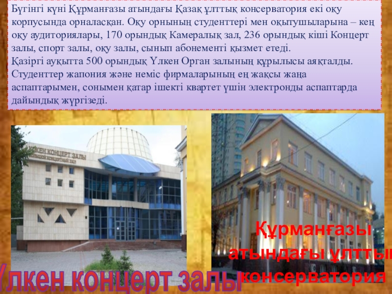 3. Өнер ордасы- Құрманғазы атындағы ұлт аспаптар консерваториясы.