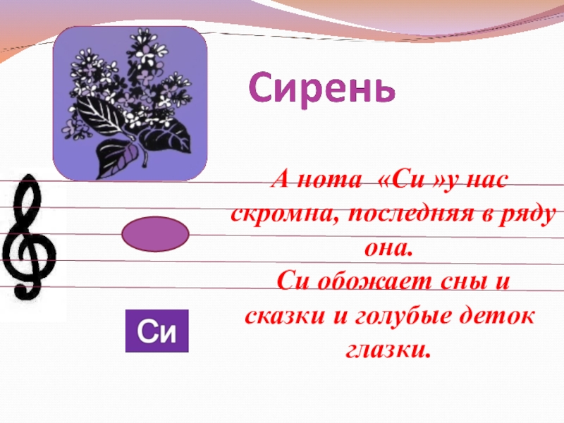 А нота «Си »у нас скромна, последняя в ряду она. Си обожает сны и сказки и голубые