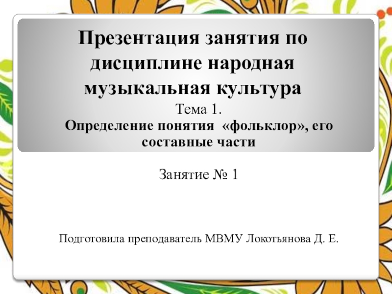 Подготовила преподаватель МВМУ Локотьянова Д. Е.