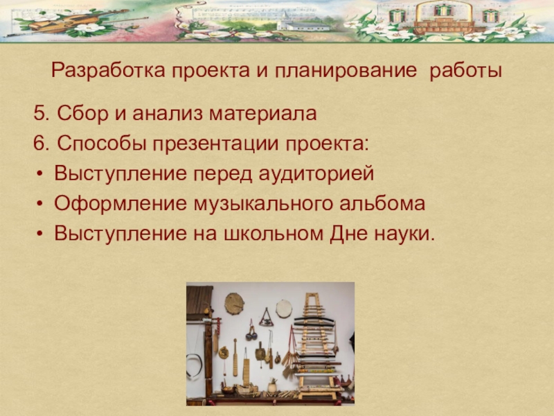 В результате работы над творческим проектом мы научились искать нужную информацию в интернете, оформлять текстовый документ, ссылки, работать с предметным указателем, словарями и другой литературой. Создали альбом художественных и музыкальных произведений.