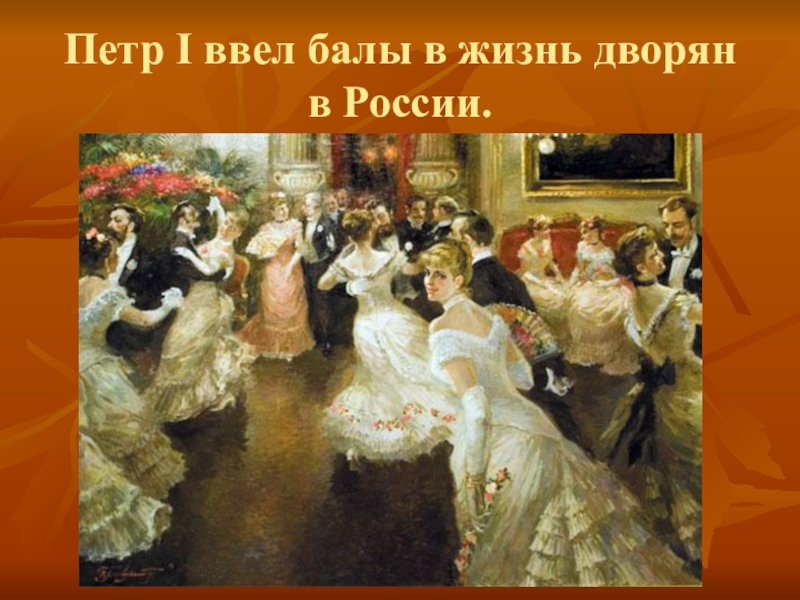 Слайд 9Петр I ввел балы в жизнь дворян в России.