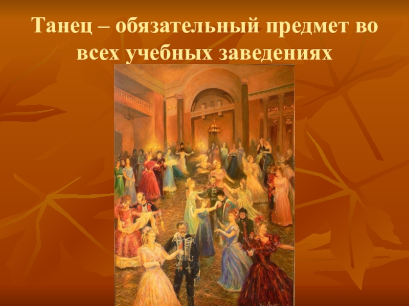 Слайд 10Танец – обязательный предмет во всех учебных заведениях