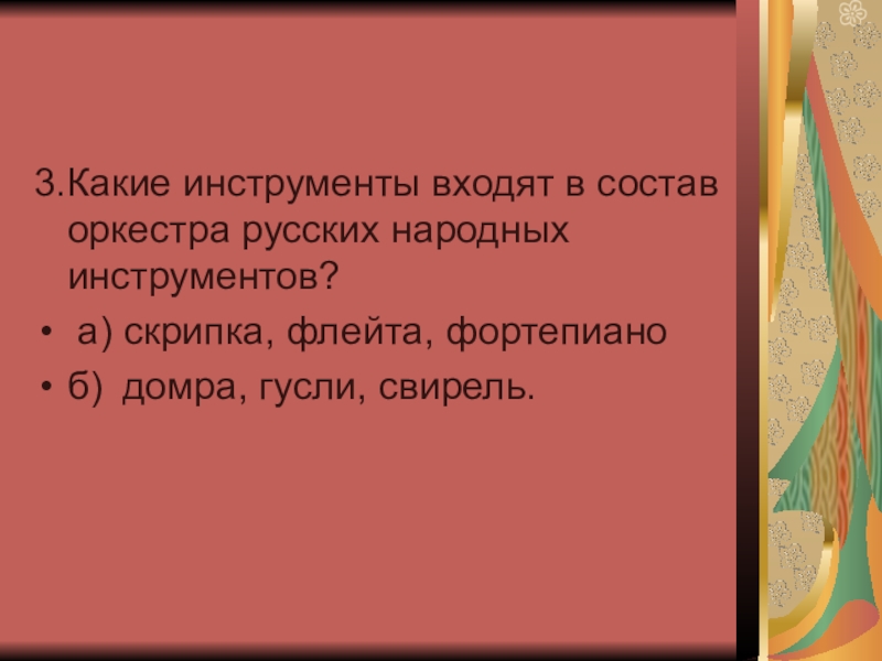3.Какие инструменты входят в состав оркестра русских народных инструментов?