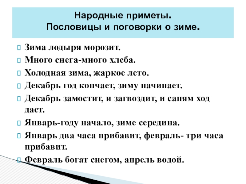 Пословицы и поговорки о зиме.