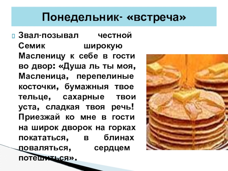 Понедельник- «встреча»