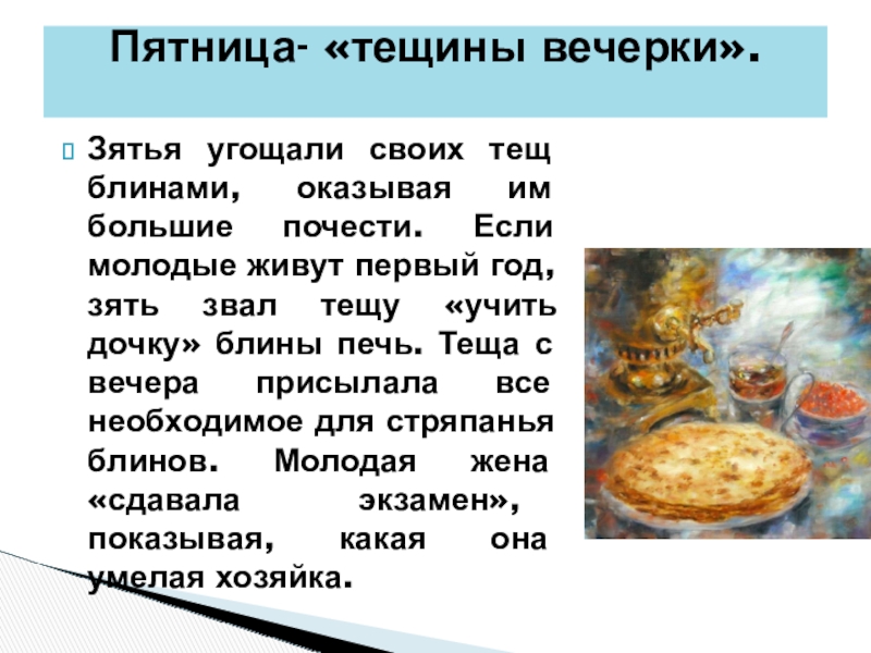 Пятница- «тещины вечерки».