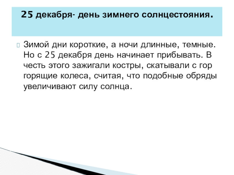 25 декабря- день зимнего солнцестояния.