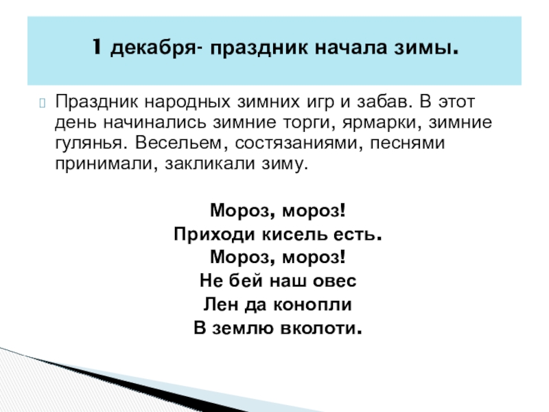 1 декабря- праздник начала зимы.