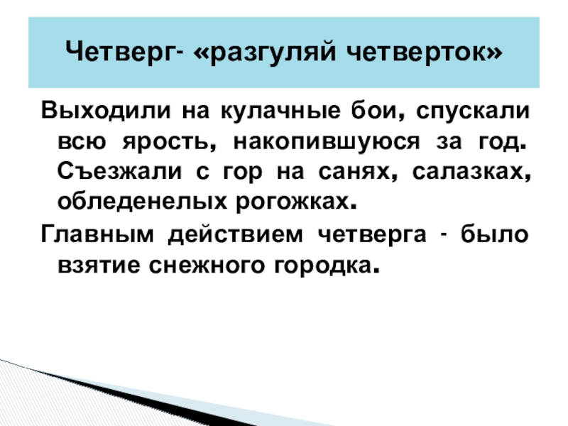 Четверг- «разгуляй четверток»
