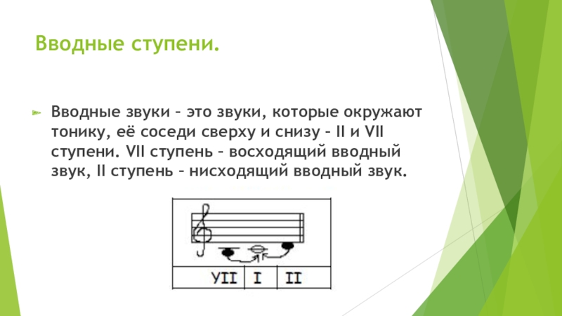 Вводные ступени. Вводные звуки – это звуки, которые окружают тонику, её соседи сверху и снизу – II