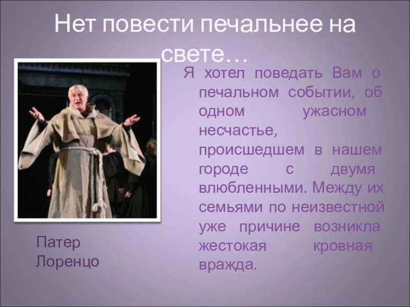 Вступление – тема патера Лоренцо. Он начинает свой рассказ