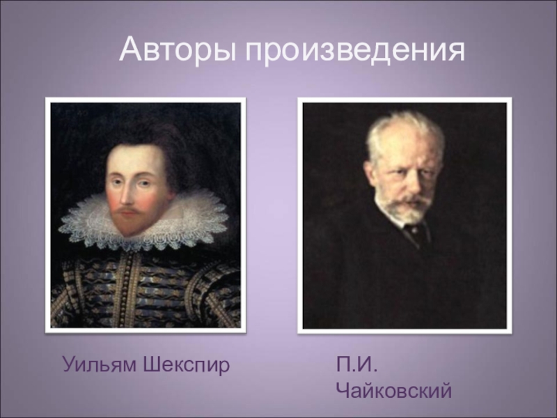 Авторы произведенияУильям ШекспирП.И.Чайковский