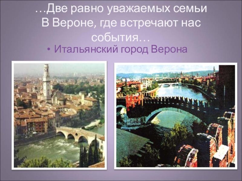 …Две равно уважаемых семьи В Вероне, где встречают нас события…Итальянский город Верона
