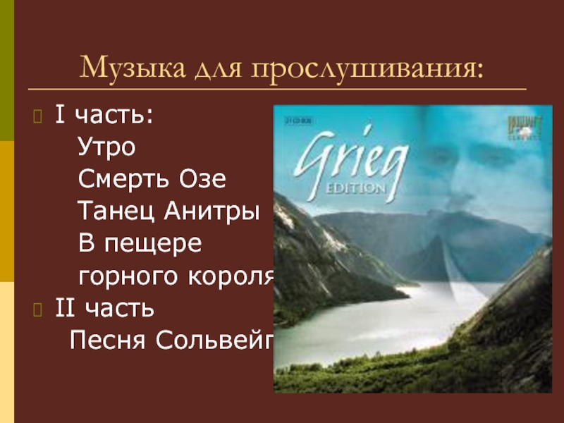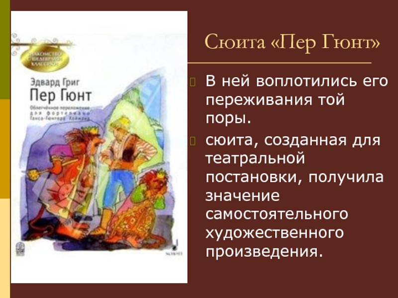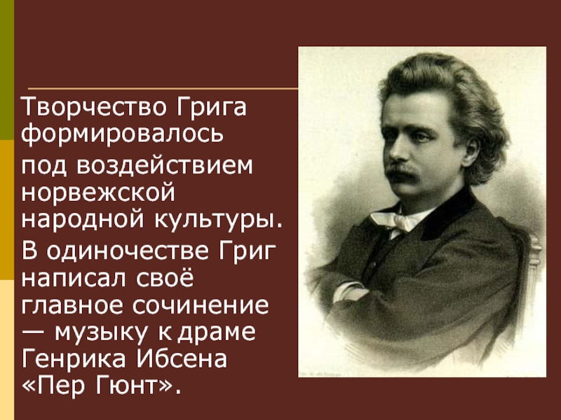 своё главное сочинение — музыку к драме Генрика Ибсена «Пер Гюнт».