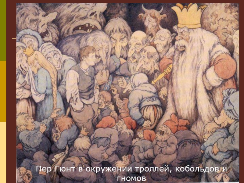 Пер Гюнт в окружении троллей, кобольдов и гномов
