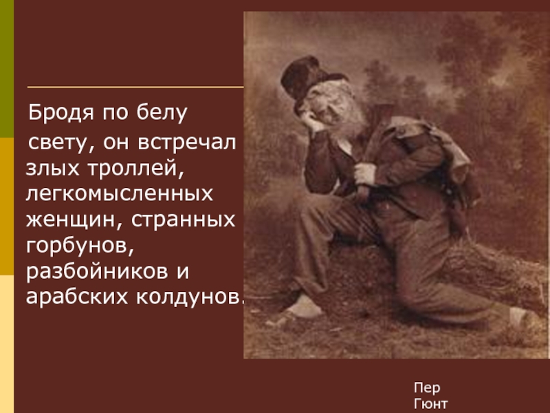 Слайд 30 Пер Гюнт возвращается на родину. Годы странствий не обогатили