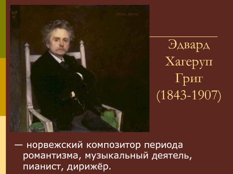 — норвежский композитор периода романтизма, музыкальный деятель, пианист, дирижёр.