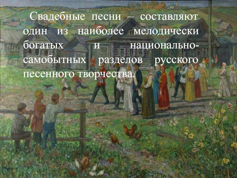 Свадебные песни – составляют один из наиболее мелодически богатых и национально-самобытных разделов русского песенного творчества.