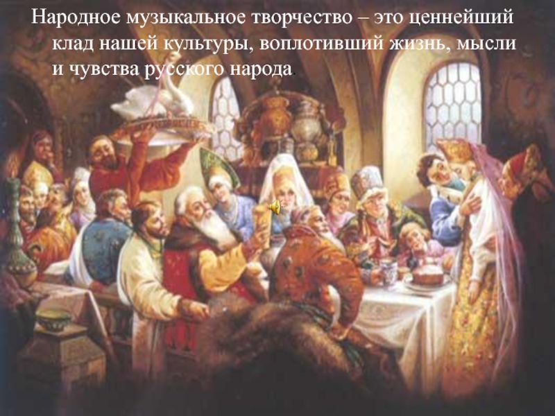 Слайд 10Народное музыкальное творчество – это ценнейший клад нашей культуры, воплотивший жизнь,