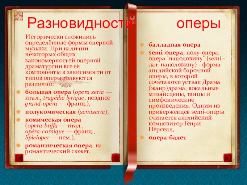 semi-опера, полу-опера, опера "наполовину" (semi - лат. наполовину) - форма английской барочной оперы, в которой сочетаются устная Драма (жанр)драма, вокальные мизансцены, танцы и симфонические произведения. Одним из приверженцев semi-оперы считается английский композитор Генри Пёрселл,