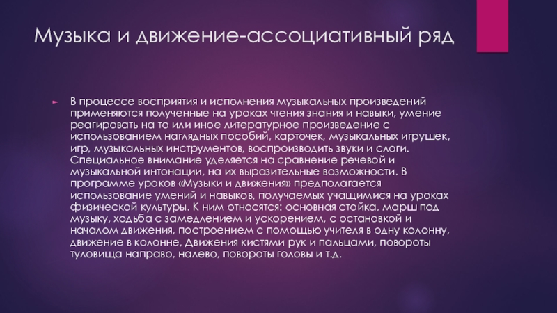 Слайд 18Музыка и движение-ассоциативный ряд