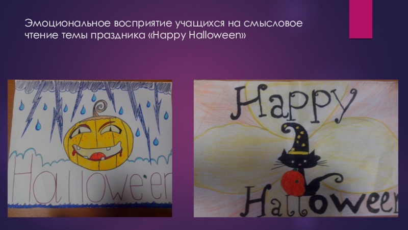 Слайд 12Эмоциональное восприятие учащихся на смысловое чтение темы праздника «Happy Halloween»