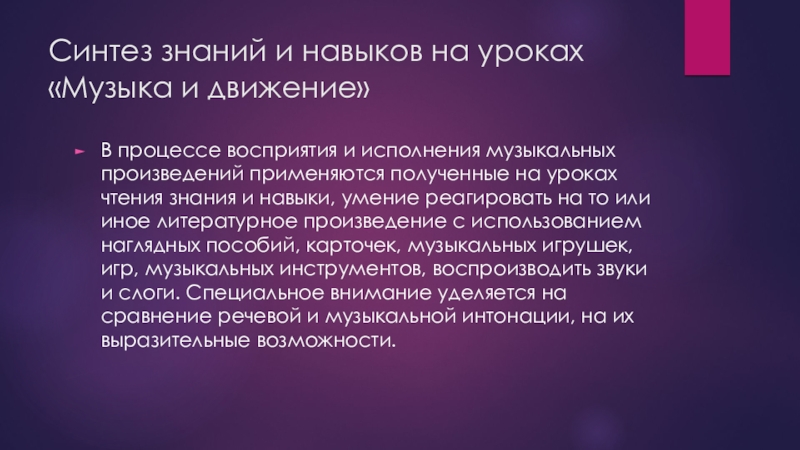 Слайд 7Синтез знаний и навыков на уроках «Музыка и движение»