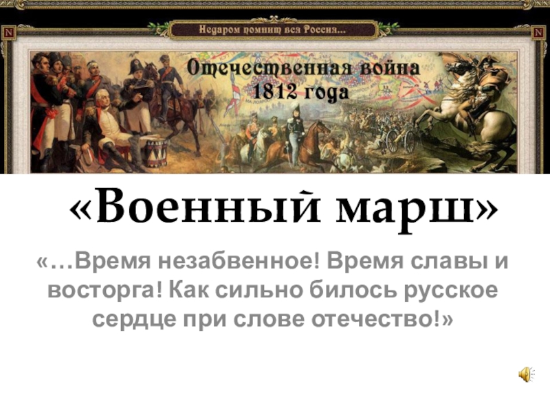 «Военный марш»«…Время незабвенное! Время славы и восторга! Как сильно билось русское сердце при слове отечество!»