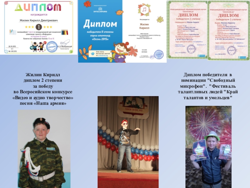 Диплом победителя в номинации "Свободный микрофон". "Фестиваль талантливых людей "Край талантов и умельцев"