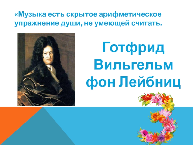 Слайд 3«Музыка есть скрытое арифметическое упражнение души, не умеющей считать.
