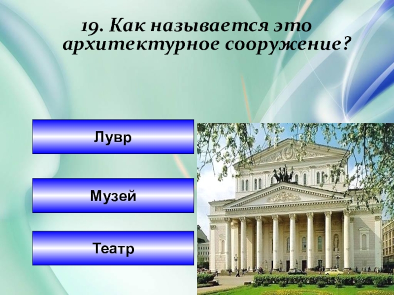 19. Как называется это архитектурное сооружение? ЛуврМузейТеатр