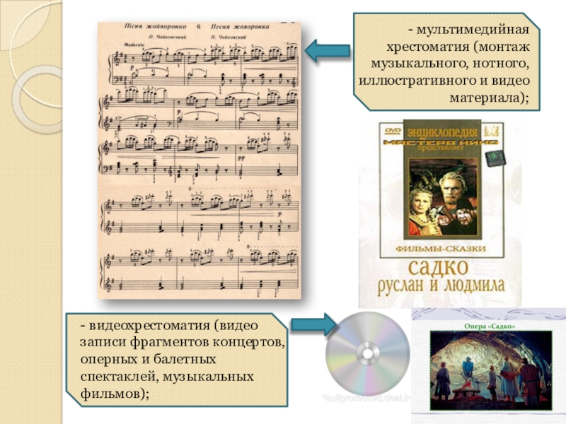 - мультимедийная хрестоматия (монтаж музыкального, нотного, иллюстративного и видео материала);