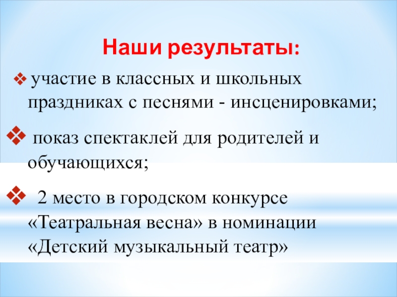 Презентация, доклад программы Внеурочной деятельности Детский музыкальный театр