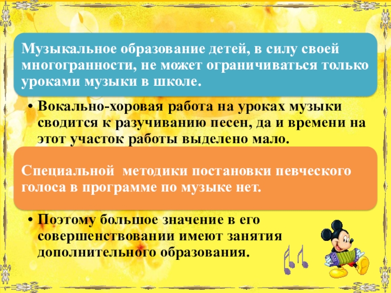 нашей школе, целью которой является научить детей петь.