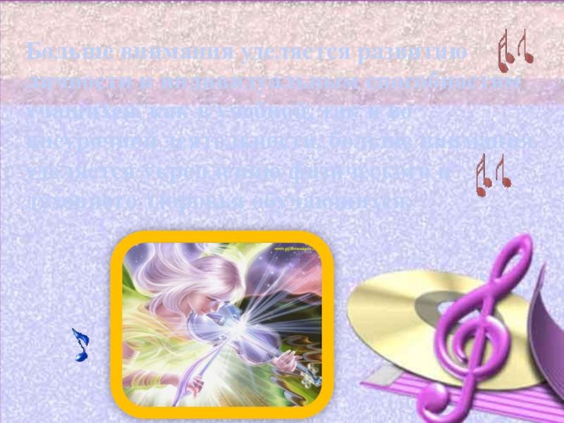 Слайд 6Больше внимания уделяется развитию личности и индивидуальным способностям учащихся, как в