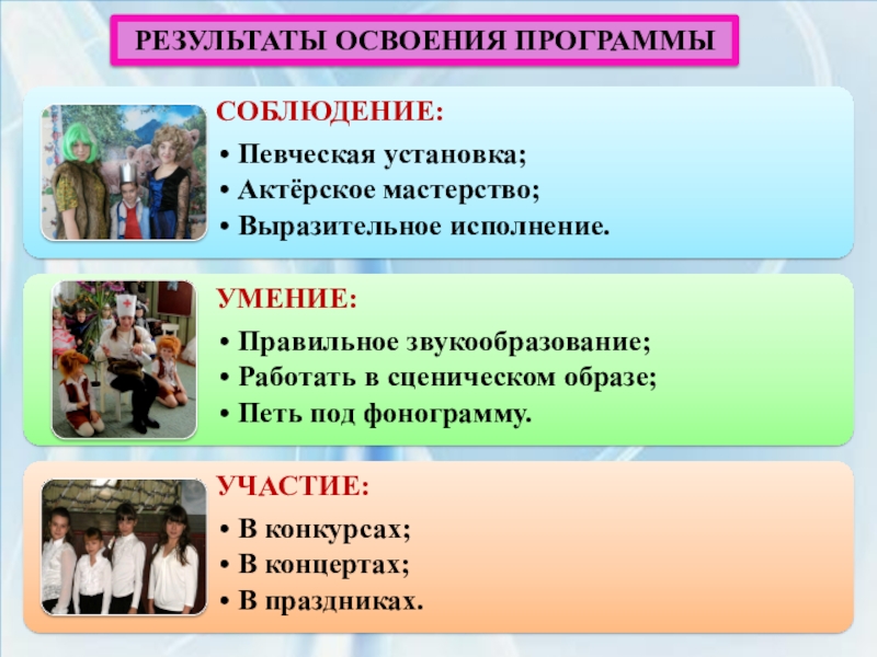 Слайд 15РЕЗУЛЬТАТЫ ОСВОЕНИЯ ПРОГРАММЫ