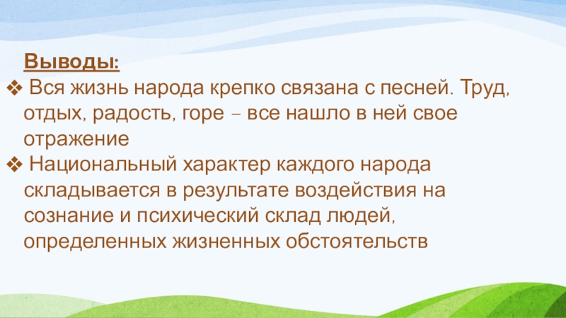 Раскрыть роль народной песни в жизни народа, а становлении его характера