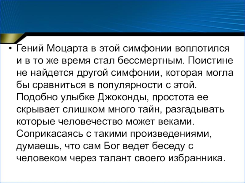 Слайд 15Гений Моцарта в этой симфонии воплотился и в то же время