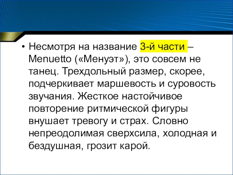 Слайд 13Несмотря на название 3-й части – Menuetto («Менуэт»), это совсем не