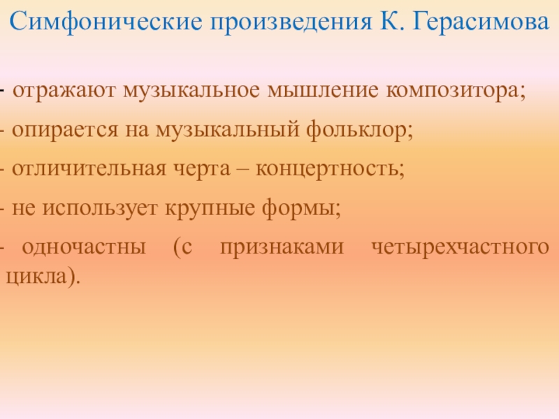 3.Выявить особенности, характер-ные для симфонических произве-дений Кирилла Герасимова.