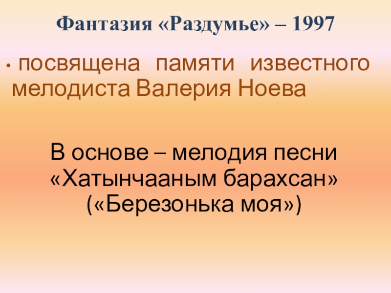 Симфоническая фантазия «Раздумье» на тему песни Валерия Ноева, 1997 г.;