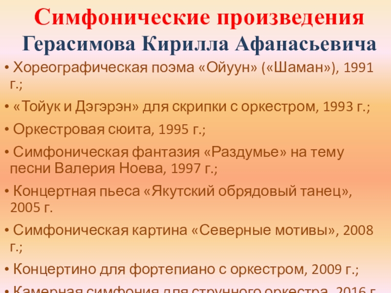 1.Дать краткую характеристику симфонического творчества якут-ского композитора К.А. Герасимова.