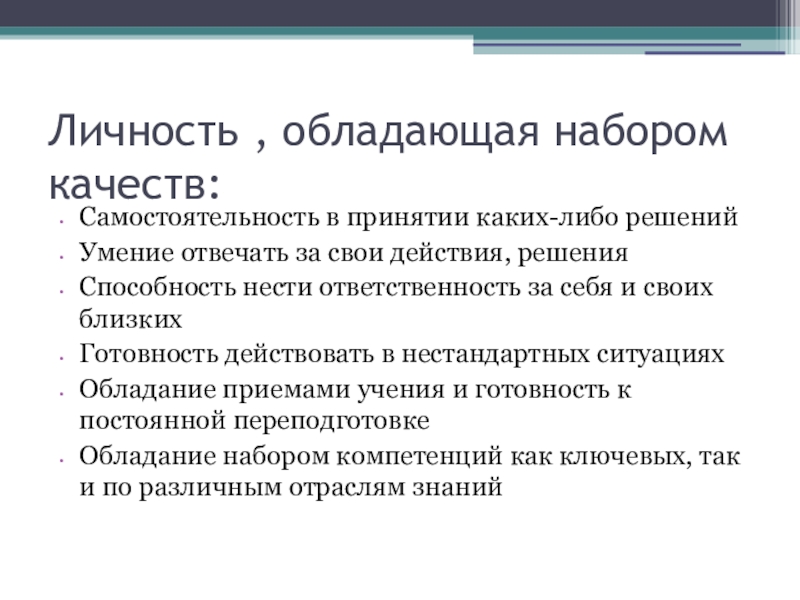 Обладание набором компетенций как ключевых, так и по различным отраслям знаний