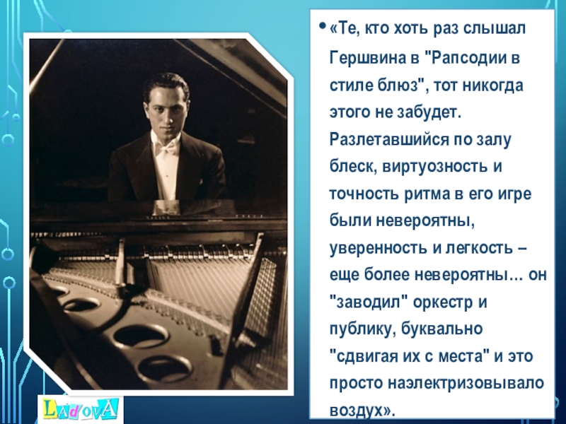 Слайд 6«Те, кто хоть раз слышал Гершвина в "Рапсодии в стиле блюз",