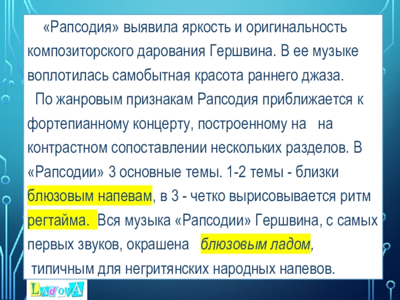 Слайд 5 «Рапсодия» выявила яркость и оригинальность композиторского дарования Гершвина. В