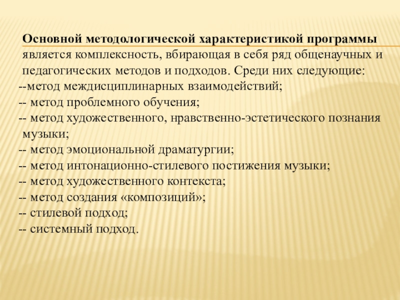 Слайд 9Основной методологической характеристикой программы является комплексность, вбирающая в себя ряд общенаучных