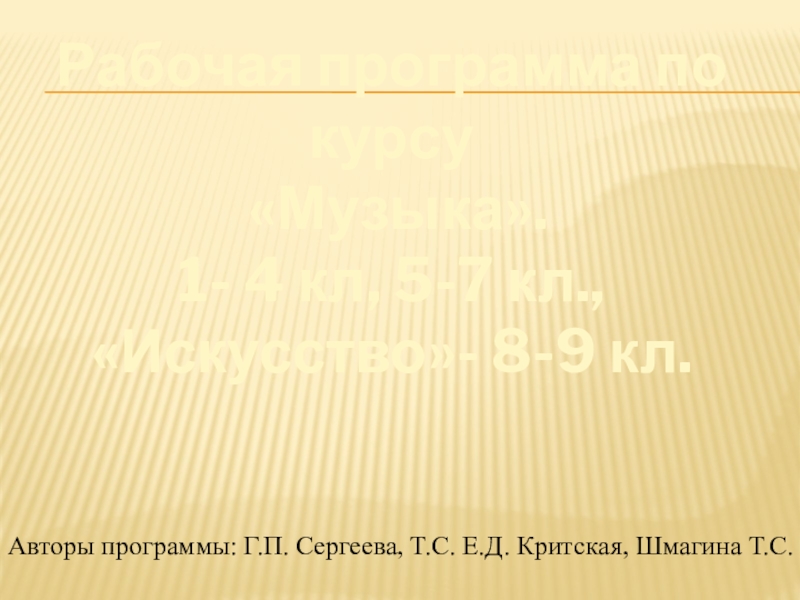 Авторы программы: Г.П. Сергеева, Т.С. Е.Д. Критская, Шмагина Т.С.