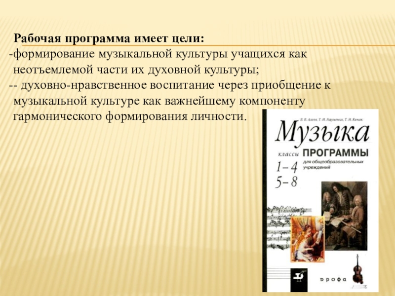 Слайд 17Цель массового музыкального образования и воспитания — формирование музыкальной культуры как неотъемлемой части духовной